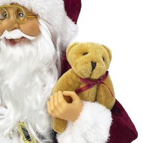 Este adorável Papai Noel sentado é a personificação do espírito natalino. Vestido em seu traje vermelho característico, botas pretas e gorro vermelho com pompom, ele é um ícone festivo. Este boneco de Papai Noel sentado é perfeito para a decoração de Natal. Sua postura aconchegante e sorridente convida a todos a compartilhar a alegria da temporada festiva.