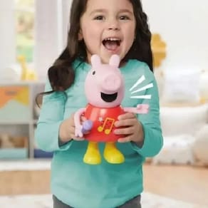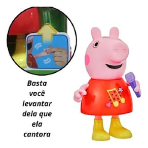 É super fácil brincar: basta levantar o braço da Peppa e ela começa a cantar, conversar e se expressar com frases divertidas que as crianças adoram! Ideal para estimular a imaginação, a linguagem e garantir muitas risadas.