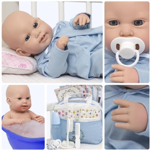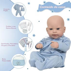 A nossa empresa tem a missão de garantir a total satisfação de seus clientes, onde a qualidade e o atendimento excepcional são nossa prioridade Estamos muito felizes em apresentar o Boneco Bebê Reborn Luca para você, um item cuidadosamente selecionado para atender às suas necessidades. Compre agora e experimente a diferença em comprar com a nossa loja. O Boneco Bebê Reborn Luca é o sonho da criançada Produzido 100% em vinil siliconado, esse boneco pode sentar, deitar e fazer tudo que a sua imaginação deixar. Com seus olhos claros e detalhes realistas ele é encantador e apaixonante. Sua criança merece a melhor qualidade de bebê reborn Marca: Cegonha Reborn Dolls Modelo: Boneco Bebê Reborn Luca Cor: Bege Material: Vinil Siliconado Atóxico Características Principais: Membros Articulados, Corpo de Silicone, Detalhes Realistas. Medidas Aprox.: Altura do Boneco: 43cm Peso Aprox. Do Boneco: 0,745 Kg Certificado INMETRO Recomendado para crianças maiores de 03 anos Conteúdo: 1 Bebê Reborn Luca Cabeça, Membros e Corpo de Vinil 1 Conjunto Pagão Azul 1 Chupeta 1 Mamadeira Simples 5 Certificados 3 Fraldas 1 Par de Luvas 1 Bolsa Maternidade 1 Prendedor de Chupeta Kit Pente e Escova Simples 30 dias de oferecida pelo fabricante. Dúvidas Frequentes: 1. Ele acompanha Itens R. Sim, todos os itens da descrição. 2. Ele emite algum som R. Não, ele não emite nenhum som. 3. Pode dar banho no boneco R. Sim, pois o material do corpo é de Silicone. 4. Pode escolher a cor dos olhos do boneco R. Não, os olhos já vêm de fábrica. Tags: boneco, bebe, reborn, realista, menino, masculino, infantil, silicone, princesa, príncipe, linda, fofa, banho, enxoval, completo, grande, baby alive. Homologação Inmetro: CE-BRI/ICEPEX-N 01382-80-8