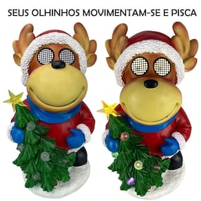 1 Boneco Rena de Natal Segurando Arvore Mexe Olhos
