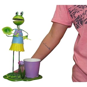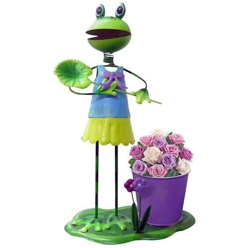 Boneco Sapo de ferro é um otimo enfeite para qualquer ambiente de sua casa, principalmente jardim e janela. Decoração de ferro com pintura especial para ambientes externos suportando sol e chuva com longo prazo de durabilidade. E nem por isso dispensa ambientes internos como, cozinha, sala, quarto ou escritório. Lindo sapo que acompanha um charmoso vaso para flores.