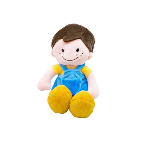 Boneco Sorridente Roupa Azul 29cm Boneco de 29 cm de altura (cabeça aos pés) com rosto feliz sorridente. O boneco usa um macacão azul com bolsa na frente. A roupa é removível. Material: poliéster; Enchimento: fibra de poliéster Informação Adicional Peso (Kg): 0.08 Altura (cm): 29.00 Largura (cm): 14.00 Comprimento (cm): 8.00