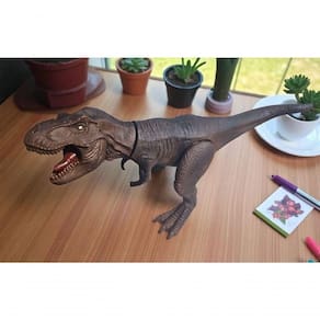 Benefícios do Produto:- Tamanho impressionante de 45 cm ? Ideal para quem busca um brinquedo que se destaque pela presença.- Vinil macio e resistente ? , durável e confortável ao toque.- Articulado ? Cabeça e pernas móveis para maior interatividade nas brincadeiras.- Acabamento realista ? Texturas e cores vibrantes que remetem ao visual do verdadeiro T-Rex.- Diversão educativa ? Estimula a criatividade, a curiosidade sobre a pré-história e o interesse por paleontologia.