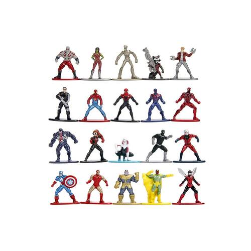Bonecos colecionáveis Marvel de metal fundido de 4,16 cm, pacote com 20, onda 1, brinquedos para crianças e adultos - Autenticamente licenciado pela Marvel - Feito de materiais duráveis, como 100% metal fundido e tintas metálicas premium, a qualidade desses bonecos é inegável. - Com cerca de 4 cm e pesando aproximadamente 30 g. - Bonecos altamente colecionáveis incluídos neste pacote com 20, misture e combine os diferentes personagens do universo Marvel. - Nosso método de fundição de alta qualidade nos permite capturar o estilo, poses e qualidade única de vários personagens da Marvel. - Inclui: Drax, Gamora, Groot, rocket, Star-Lord, Winter Soldier, proto-suit Spider-Man, Spider-Man superior, Homem-Aranha 2099, Carnificina, Venom, Spider-Girl, Fantasma-Spider, Pantera Negra, Homem-Formiga, Capitão América, Homem de Ferro, Thanos, visão, Vespa