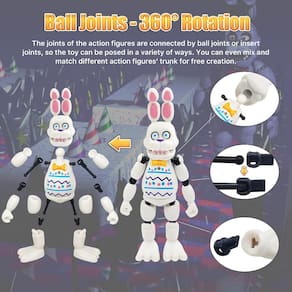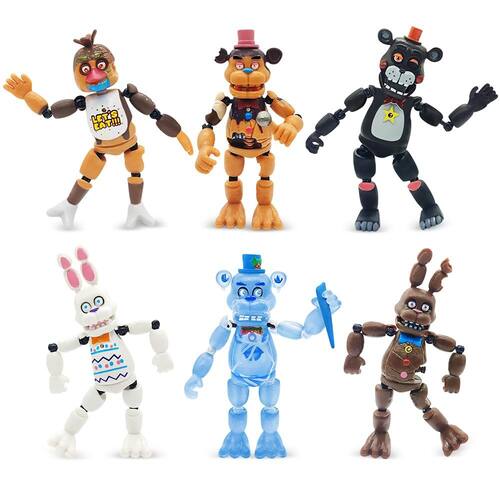 Um conjunto de brinquedos colecionáveis. ? Inspirados no jogo, estes 6 personagens do jogo têm uma aparência diferente e uma expressão facial vívida, que é uma coleção para crianças e fãs que gostam desses personagens do jogo. ? As seis formas diferentes das 3 figuras, bem como as articulações flexíveis e delicadas, são adequadas para uma ampla variedade de cenários e criam possibilidades ilimitadas. Dicas de aquecimento: ? As juntas são feitas de peças pequenas, cuidado com os riscos de asfixia para crianças. ? Devido à longa distância de transporte, alguns membros de brinquedo se desfazem, isso é normal, você pode montar sozinho. Pode haver uma diferença de 1 a 5 mm devido a diferentes métodos de medição e ferramentas. ? Devido à diferença entre diferentes monitores, a imagem pode não refletir a cor real dos itens. ? A bateria do conjunto de bonecos de ação não pode ser substituída, alguns bonecos podem não acender, este é um fenômeno normal. ? Recomendado para crianças a partir de 3 anos. Serviço pós-venda: ? Se você tiver algum problema após sua compra, sinta-se à vontade para entrar em contato conosco, faremos o nosso melhor para ajudá-lo. Especificações: ? Material: PVC ? Peso: 0,42 kg/0,92Ib ? Altura do produto: 13,5-15,5 cm/5,3-6,1 polegadas Conteúdo da embalagem: ? 6 bonecos de cinco noites. - ?Tamanho coletivo?: estes brinquedos de topo de bolo têm cerca de 13,5 a 15,5 cm, o que é tão alto quanto uma caneta. Eles pesavam 0,42 kg/0,92 lb no total, com média de apenas 0,07 kg/0,15 lb por peça. Eles são confortáveis à mão, não são gigantes ou volumosos. Brinquedos de qualidade atraem a atenção das crianças. Eles podem brincar em qualquer lugar como sofá, cama, mesa ou grama ao ar livre - ?Juntas móveis e luz?: este conjunto de bonecos Five Nights consiste em seis personagens do jogo. Eles têm rotação de 360° nas articulações do pescoço, ombro, cotovelo, quadril e joelho, permitindo que posicione diferentes posturas livremente e facilmente. Alguns membros de brinquedo se desfazem devido ao transporte de longa distância e método de emenda. É um fenômeno normal, você pode montar sozinho. O corpo do conjunto de brinquedos colecionáveis Five Nights tem bateria embutida e uma luz na frente do brinquedo. (Observação: a bateria não pode ser substituída!) - ?Material de PVC premium?: Os seis bonecos "Five Nights Action Figures" são feitos com material de PVC de alta qualidade, o que o torna seguro para as crianças brincarem e difícil de deformar. É um material resistente. Se a criança não segurar com firmeza, ficará bem. É da natureza das crianças brincar com brinquedos. Seis bonecos de ação são diversos e interessantes - ?Um presente criativo?: Presentes perfeitos para seus filhos, amigos e familiares que gostam desses personagens do jogo. Estes brinquedos da série de videogame podem ser utilizados como presente de aniversário, presente de dia das crianças, presente de Natal, presente de Halloween, presente de Páscoa e todos os outros presentes memoráveis de feriados. Peça imediatamente e dê aos seus entes queridos - Perfeito para várias ocasiões: os brinquedos divertidos de Five Nights são muito fofos e criativos, não apenas para as crianças brincarem, mas também para colecionar, utilizados como uma ótima decoração para sua casa, mesa, mesa de computador, carro, casa de bonecas e até mesmo como topo de bolo. Presente perfeito para meninos e meninas obcecados com a coleção de personagens