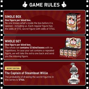 - Design aleatório: as caixas cegas são totalmente aleatórias e não podemos aceitar solicitações de itens específicos. As chances de obter a edição secreta geralmente são 1/144. Ao comprar o conjunto completo, não haverá figuras duplicadas.