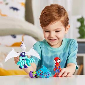 Este conjunto de bonecos de ação inclui um boneco articulado do super-herói Spidey com aproximadamente 10 cm com seu traje Dino-Web, e também, uma figura articulada do dino Ghostasaurus com aproximadamente 12.5 cm para incentivar grandes aventuras.
