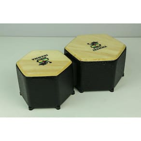 O bongô hexagonal Jhamma é o instrumento ideal para suas apresentações acústicas em igrejas, bares, roda de amigos e espaços reduzidos. Nota aguda e grave bem definida no instrumento. Ele já vai afinado e não desafina. Características:Polegadas: 6 e 7;Madeira do tampo: Sumaúma ou Angico;Madeira do corpo: MDF;12 pés de borracha.Peso: 1,4kgComprimento: 42cm