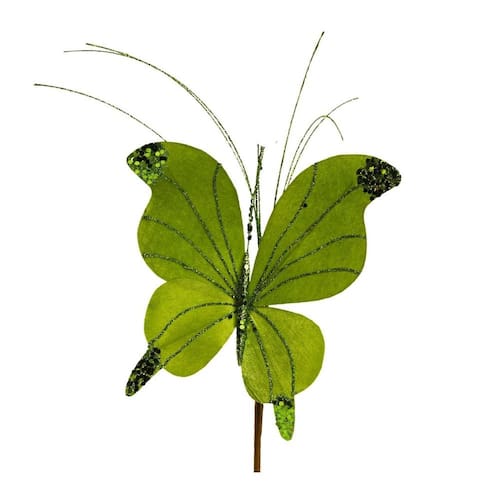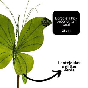Borboleta Pick Natalina Decorada com Glitter Verde – 23cm x 15cm