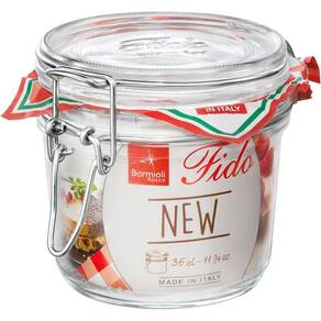 Bormioli Rocco Fido Pote Hermético 10x10x10cm 350ml Vidro Transp O pote da coleção Fido é o carro-chefe da linha Bormioli Rocco, uma renomada fabricante italiana de vidro. Ele tem uma tampa com vedante e a anilha metálica que permite vedar hermeticamente o ar e a umidade, mantendo o frescor, o aroma e o sabor do alimento armazenado.