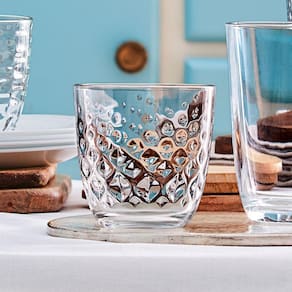 Bormioli Rocco Glit Copo água 9x9x9cm 295ml Vidro Transp 6pç O copo da linha Glit pertence à marca Bormioli Rocco, uma renomada fabricante italiana de vidro. Com padrões geométricos inspirados nas decorações maioliche e sinuosidade para criar jogos evocativos de luz, o produto é perfeito para servir qualquer tipo de bebida e iluminar sua mesa na hora de servir ou apreciar sua bebida favorita. Lavar somente com esponja macia e sabão neutro. PALAVRAS PARA OTIMIZAÇÃO DE BUSCAS: