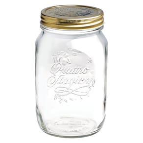 O pote da coleção "Quattro Stagioni" pertence à marca Bormioli Rocco, uma renomada fabricante italiana de vidro.