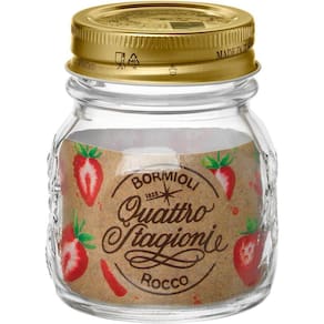 O pote da coleção "Quattro Stagioni" pertence à marca Bormioli Rocco, uma renomada fabricante italiana de vidro.