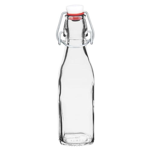 A garrafa da linha "Swing" pertence à marca Bormioli Rocco, uma renomada fabricante italiana de vidro.