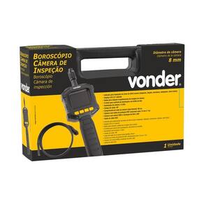 Boroscópio é indicado para inspeções de áreas de difícil acesso. Destinado à inspeção de máquinas, fiações, estruturas, tubulações, entre outras. Possui display de LCD 2,4, cabo ergonômico, botão para rotação e espelhamento da imagem da câmera, 8 níveis para controle da iluminação e do brilho da tela, tubo flexível e câmera com índice de proteção IP67 imersões entre 15cm e 1m . Conta, ainda, com câmera com sensor RGB e resolução de 640 x 480 e saída de vídeo RCA.