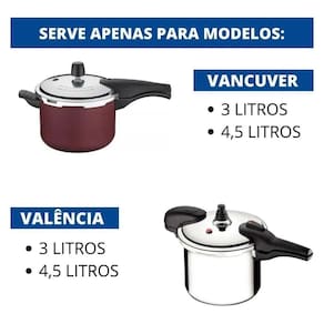 As panelas Vancouver suportam qualquer pressão para fazer bontio na cozinha. São três válvulas de que atuam juntas para aprimorar o máximo o cozimento sem riscos de acidentes. Os acabamentos interno e externo contam com antiaderente Starflon T1, enquanto as tampas possuem acabamento externo polido e interno satinado. E para manter esse padrão de qualidade conte com o anel de vedação de silicone, produto que garante a vedação da saída de vapor entre a panela e a tampa, servindo para os modelos Vancouver de 3 e 4,5 litros, além do modelo Valência de 3 e 4,5 litros.