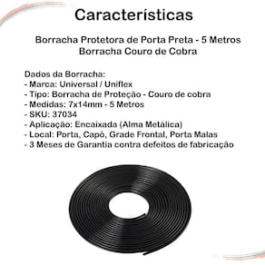 CONTEÚDO DA EMBALAGEM: 01 Borracha protetora da Porta, Capô e Porta-malas - Preta com 7x10mm - Rolo 10m