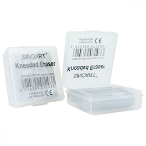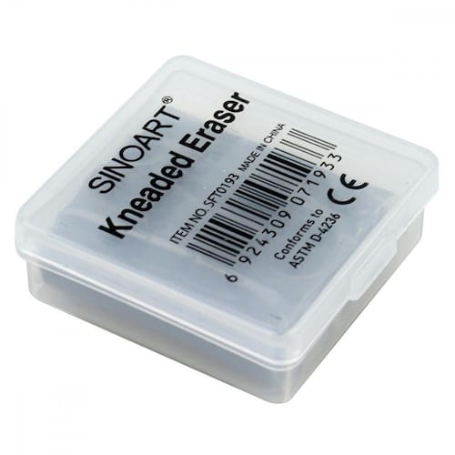 A borracha limpa tipo Sinoart também conhecida como miga de pão Gomme mie de pain é a borracha mais indicada para corrigir desenhos a carvão, pastel seco, crayons e grafite. Sua maleabilidade e formato permite um uso confortável e durável. Embalada em uma pequena caixa de plástico para sua maior durabilidade.