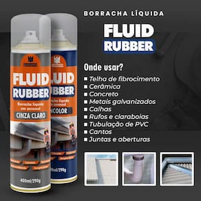 Fluid Rubber é um impermeabilizante elastomérico de borracha de etileno butadieno, base solvente, monocomponente. Sua aplicação forma uma película de borracha vulcanizada a frio resultando em uma camada impermeável e altamente resistente. Caso a membrana seja rompida, pode ser refeita no mesmo local com a reaplicação do produto, onde haverá uma fusão com a capa antiga.