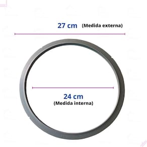 Nosso empenho é procurar o que há de mais atual e funcional no mundo culinário e para organização da sua casa, priorizando sempre a qualidade e a versatilidade dos produtos. Borracha de silicone panela rochedo turbo top 7,6 litros O que é pique São pequenos furos na borracha para encaixar na panela. As borrachas de silicone não ressecam, são melhores para o desempenho da sua panela, fazendo com que a vedação seja total Fique atento à algumas dicas de uso: - jamais coloque a panela quente embaixo da água fria, esse choque térmico causa deformidades no alumínio; - mantenha sempre o pino central limpo, faça a limpeza com algo de metal, não use palito de dente, ele pode quebrar e você precisará trocar a peça; - prefira cozinhar em fogo baixo, o tempo é o mesmo e evita que a água seque mais rápido. Qualidade: anel de silicone, 100% atóxico, ou seja, não contamina os alimentos. Durabilidade: dura 10 vezes mais, quando comparado com outros anéis de borracha comum. Economia: diminui o tempo de cozimento dos alimentos, pois veda a tampa da panela com maior eficácia. Limpeza: lavar sempre o anel e a válvula de segurança. Manutenção em dia = panela segura. Medidas: Diâmetro externo: 27 cm Diâmetro interno: 24 cm Conteúdo da embalagem: Gostou Esse produto pode ser seu aguardamos sua compra Marca: Não Informado
