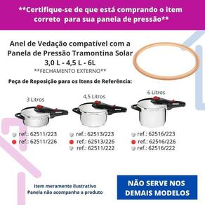 Anel de vedação de silicone compatível para panelas tramontina solar - modelos novos detalhes vermelhos 3l, 4,5l e 6l Nosso empenho é procurar o que há de mais atual e funcional no mundo culinário e para organização da sua casa, priorizando sempre a qualidade e a versatilidade dos produtos. Tenha sempre em mãos a borracha de silicone para panelas adequada ao modelo da sua panela, garantindo a vedação perfeita e a segurança no preparo das suas receitas. Produzido em silicone 100% atóxico, não resseca, mantém a durabilidade e melhora o desempenho da panela. Compatibilidade linha solar - 3 litros - ref.: 62511 / 223 / 226 - 4,5 litros - ref.: 62513 / 222 / 223 / 226 - 6 litros - ref.: 62516 / 222 / 223 / 226 Atenção: não serve para modelos antigos detalhes amarelo . Não serve para os demais modelos da mesma marca Características técnicas - material: silicone 100% atóxico - diâmetro externo: 24 cm - diâmetro interno: 22 cm - produto da marca guamantec - alta qualidade Benefícios - vedação completa e segura da panela - aumenta a vida útil da sua panela - mantém o cozimento mais eficiente Conteúdo da embalagem 1 anel de vedação de silicone compatível com a panela tramontina solar Marca: Não Informado