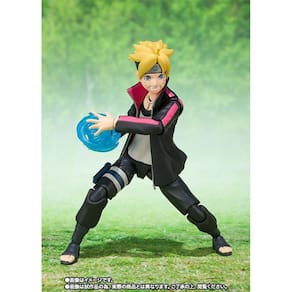Boruto Uzumaki - Naruto Next Generations - S.H.Figuarts - Bandai Boruto Uzumaki é um shinobi do clã Uzumaki de Konohagakure, assim como um descendente do clã Hyuga. Ele também é um membro do Time Konohamaru. Desde que seu pai, Naruto Uzumaki, se tornou o Hokage, Boruto passou a ser ressentido com ele por nunca ter tempo o suficiente para ele e sua família, levando-o a agir de maneira indignada. Ele também tinha uma tendência a tomar atalhos como um ninja em vez de depender de sua própria força. No entanto, após o treinamento sob a tutela de Sasuke Uchiha e sua luta contra Momoshiki e Kinshiki Otsutsuki com seu pai e professor, Boruto eventualmente passou a respeitar seu pai e seu papel como Hokage, mas mesmo assim ele promete ir por um caminho diferente do que Naruto escolheu, decidindo se tornar um ninja como Sasuke.