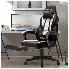 BOSSIN Cadeira de Escritório Gamer Reclinável e Ergonômica com Apoio para Lombar, Branca