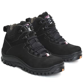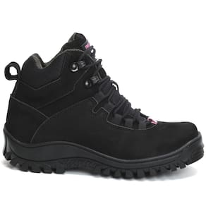 Bota Adventure Couro Feminina Nobuck Cadarço Cano Médio - 40 - Preto