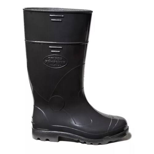 Proteção: ótimo desempenho de custo-benefício em ambientes industriais agressivos; conforto: palmilha de pvc inclusa resulta mais conforto térmico. Durabilidade: combinação única de pvc, borracha nitrílica e polímeros especiais traz mais durabilidade que o pvc tradicional. Ambientes indicados: campo, mineradora, galeria de saneamento e indústria. Descrição: calçado ocupacional tipo bota cano longo, confeccionado em pvc, impermeável, na cor preta, solado em pvc antiderrapante, acabamento interior com meia de poliéster na cor branca.