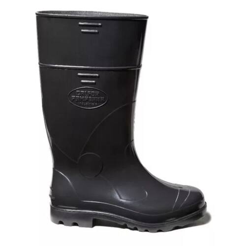 DESCRIÇÃO: Calçado ocupacional tipo bota cano longo, confeccionado em PVC, impermeável, na cor preta, solado em PVC antiderrapante, acabamento interior com meia de poliéster na cor branca.