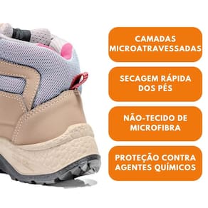 Calçado ocupacional tipo tênis, cano alto, confeccionado em microfibra e tecido dupla frontura, com forração em nylon e biqueira de polipropileno. Solado bidensidade em PU, resistência ao escorregamento (SRC) e absorção de impacto (E). Com fechamento em cadarço ilhós tipo gorgurão retro refletivo e passador plástico de alta resistência.