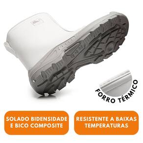 Bota coturno de segurança (SB) confeccionado em microfibra hidrofugada, com forração interna térmica resistente a baixas temperaturas, biqueira composite, palmilha de montagem em tecido não tecido (TNT) costurada pelo sistema strobel e sobre-palmilha de conforto em EVA 4mm.