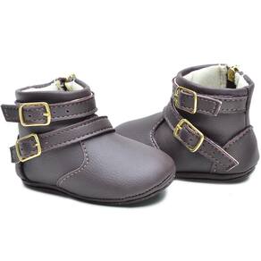 Bota Botinha Menina Lisa Fechamento Ziper Solado Borracha - 14 - Marrom