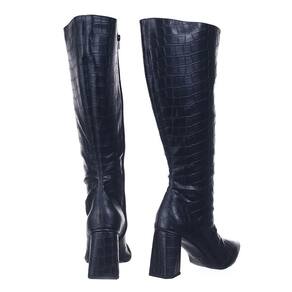 Bota Cano Alto Feminina Croco Salto Grosso e Bico Fino Fecho Zíper - 35 - Preto