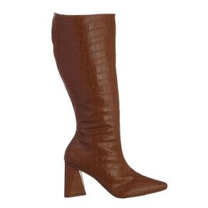 Bota Cano Alto Feminina Croco Salto Grosso e Bico Fino Fecho Zíper - 37 - Marrom