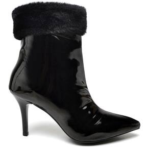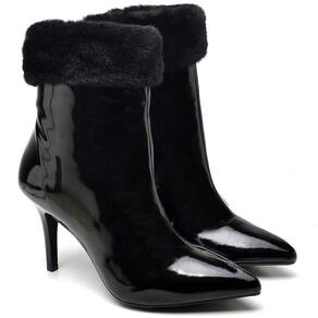 Bota Cano Curto Ellas Online Verniz Bico Fino com Salto Medio e Detalhe Pelo - 38 - Branco