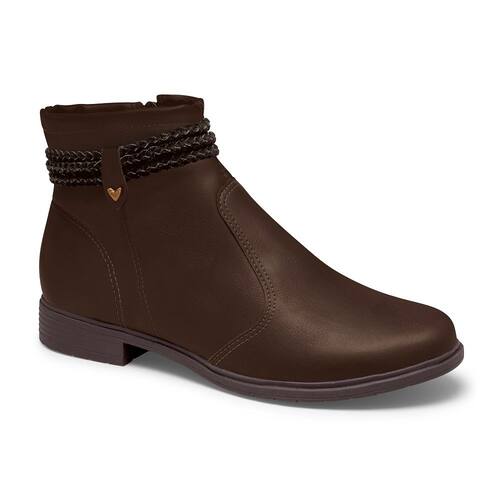 A bota conta com detalhes que fazem a diferença, como as tranças delicadas e sofisticadas que envolvem o cano, que tem altura de 14 cm e circunferência de 21,5 cm. Além disso, conta com zíper na lateral do cano que facilita o calce.
