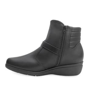 Nome: Bota Cano Curto Piccadilly e Meia PD24-11710. Gênero: Feminino. Indicado Para: Dia a dia. Ocasião: Casual. Material Externo: Alternativo. Material Interno: Têxtil acolchoado. Detalhe: Recortes e costuras no cabedal e fivela com logo da marca na lateral externa. Fechamento: Zíper na lateral interna. Palmilha: Anatômica, forrada e ultra macia. Tipo de Salto: Anabela. Altura do Salto: Médio 5 cm. Cano: 11,5 cm. Circunferência: 28 cm aproximadamente. Solado: Borracha antiderrapante. Peso do Produto: 937 g (o peso varia de acordo com a numeração). Garantia do Fabricante: Contra defeito de fabricação. Origem: Nacional. Código Produto: 02071555. Marca: Piccadilly. Acompanha um par de meias finas tamanho único. Composição: 85% Poliamida e 15% Elastano.