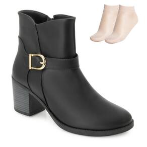 Aposte na elegância e conforto da Bota Cano Curto Quiz e transforme qualquer look com atitude e estilo! Com design moderno, recortes marcantes e fivela no tornozelo, ela é perfeita para composições urbanas e sofisticadas. Seu salto bloco de 6 cm garante estabilidade e um toque de charme, enquanto o forro acolchoado e a palmilha macia oferecem conforto o dia todo. O zíper lateral facilita o calce, e o solado antiderrapante traz mais segurança ao caminhar. E para completar, acompanha um par de meias finas, ideal para um visual ainda mais elegante. Um combo irresistível para quem ama moda e praticidade!