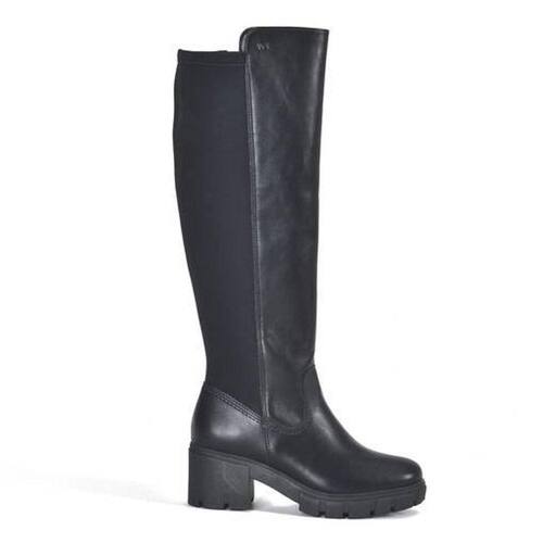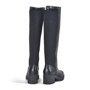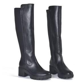 * Cabedal de sintético e neoprene;* Fechamento por zíper na lateral interna;* Interior forrado em têxtil;* Bico redondo;* Palmilha removível em EVA e têxtil;* Solado PVC expandido e com frisos;* Medida: salto 6,5cm, altura do cano 44cm, circunferência do cano 38cm.
