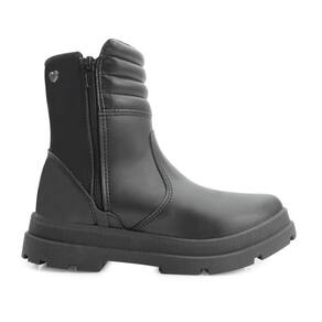 Nome: Bota Cano Médio Kidy KD24-36300. Gênero: Menina. Indicado Para: Moda. Estilo da Peça: Casual. Ocasião: Dia a dia. Material Externo: Alternativo com recortes e costuras. Material Interno: Têxtil acolchoado. Detalhes: Pin da marca na lateral externa. Fechamento: Zíper na lateral externa. Palmilha: Anatômica e macia. Cano: Médio 12,5 cm de altura. Circunferência: 26 cm aproximadamente. Tipo de Solado: Levemente tratorado. Solado: Borracha antiderrapante. Peso do Produto: 789 g (o peso varia de acordo com a numeração). Garantia do Fabricante: Contra defeito de fabricação. Origem: Nacional. Código Produto: 04070274. Marca: Kidy.