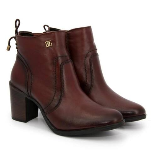 Bota Casual Couro Feminina Cano Curto Salto Grosso Lisa - 33 - Marrom