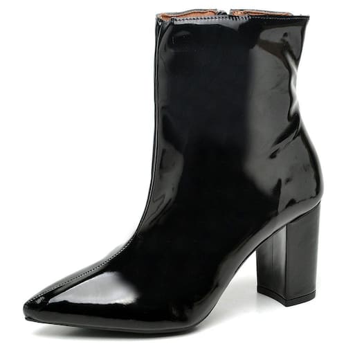 Bota Casual Ellas Online em Verniz Bico Fino com Salto Quadrado Medio Grosso - 36 - Branco