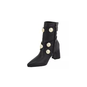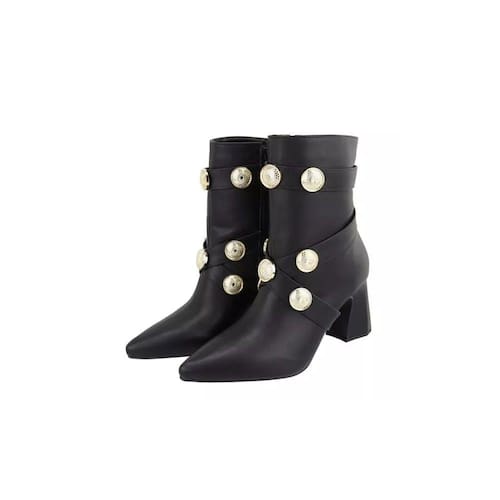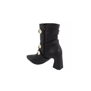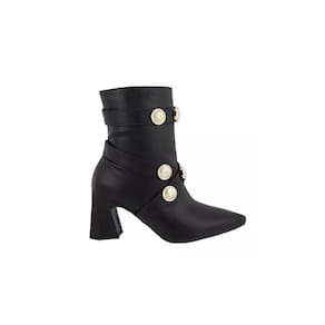Bota Casual Feminina Bico Fino Elegante Tiras Broche Moderno Zíper Salto Grosso - 40 - Preto