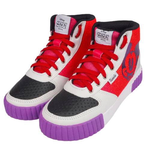 Tênis cano médio em sintético branco e preto a girl vai ficar estilosa em todos os momentos! A lateral do tênis em glitter degradê tem estampa emborrachada metalizada Mickey & Minnie . Palmilha com "Gel System'' mega confortável que absorve o impacto no calcanhar. Tênis de cano médio forrado em tecido que auxilia na absorção do suor e espuma comfy no calcanhar para mais conforto! Fechamento em cadarço vermelho. Solado em material micro expandido, material leve com muita aderência e estabilidade, além da flexibilidade, resistência térmica e alto desempenho antiderrapante. O solado tem variação de cores, completando o look cheio de personalidade!