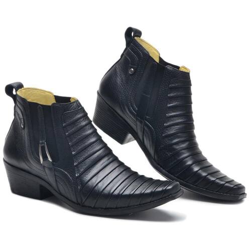 Bota Chelsea Botina Couro Bico Fino Cano Curto Moderna - 38 - Preto