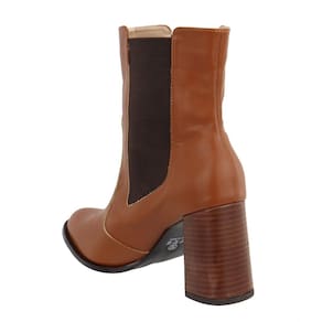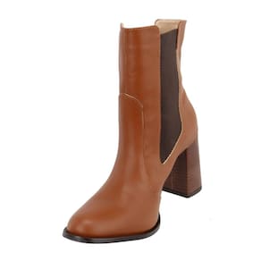 Bota Chelsea Feminina Cano Baixo Salto Grosso Elástico Lateral Bota Casual Dia a Dia - 35 - Marrom