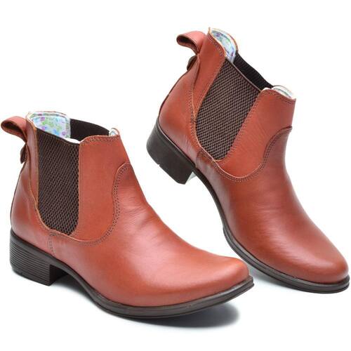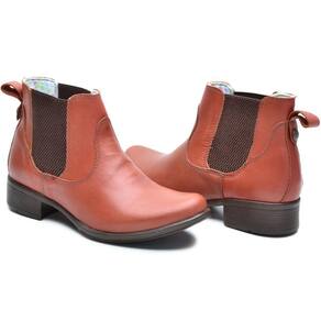 Bota Chelsea Feminina Couro Botina Cano Curto Elástico - 33 - Marrom