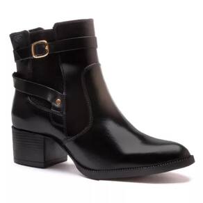 Bota Chelsea Feminina Couro Cano Curto Salto Baixo Conforto - 34 - Preto