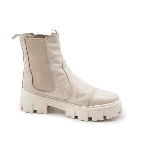 Bota Chelsea Feminina Couro Tratorada Cano Médio Estilo - 37 - Bege Claro